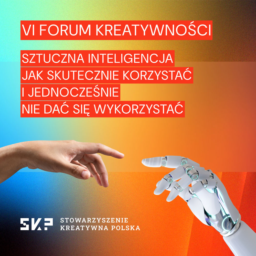 Zarejestruj się na VI edycję Forum Kreatywności 16 września w warszawskim Kinie Kultura i dołącz do dyskusji o sztucznej inteligencji - jak skutecznie korzystać i jednocześnie nie dać się wykorzystać.